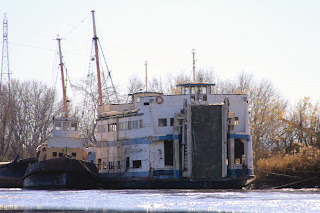 These are old, unused ferries and tugs that were too expensive to remove from the water so they just sit in the mud - rotting, until the owner is told he has to remove them..... bit until then, they sit there.